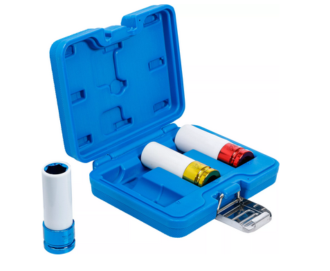 Die gängisten drei Steckschlüssel für Radschrauben in einem praktischen Set.