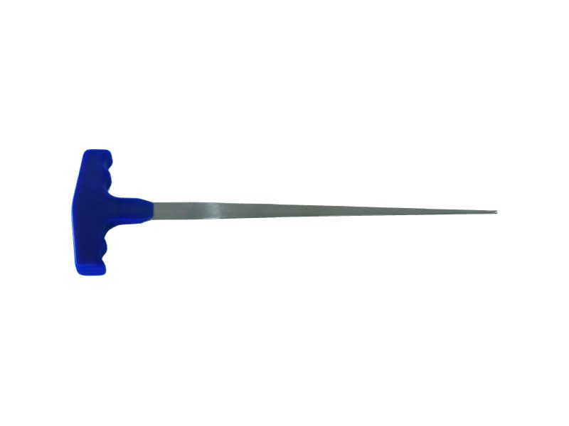 Robuster Drahtstarter mit gekerbter Spitze für den Draht bzw. der Schnur, zum Durchstechen der PU-Raupe.