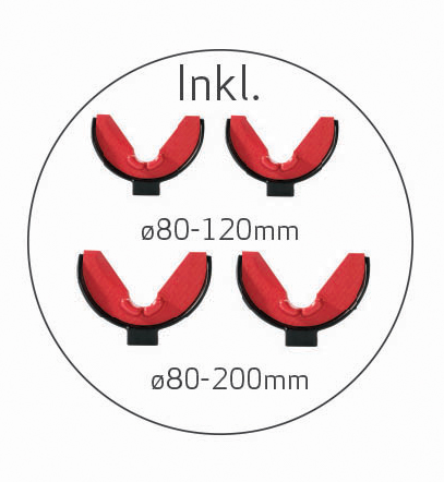 Beide mit Schutzeinlagen aus strapazierfähigem Polyurethan. (ø80-120mm und ø80-200mm)