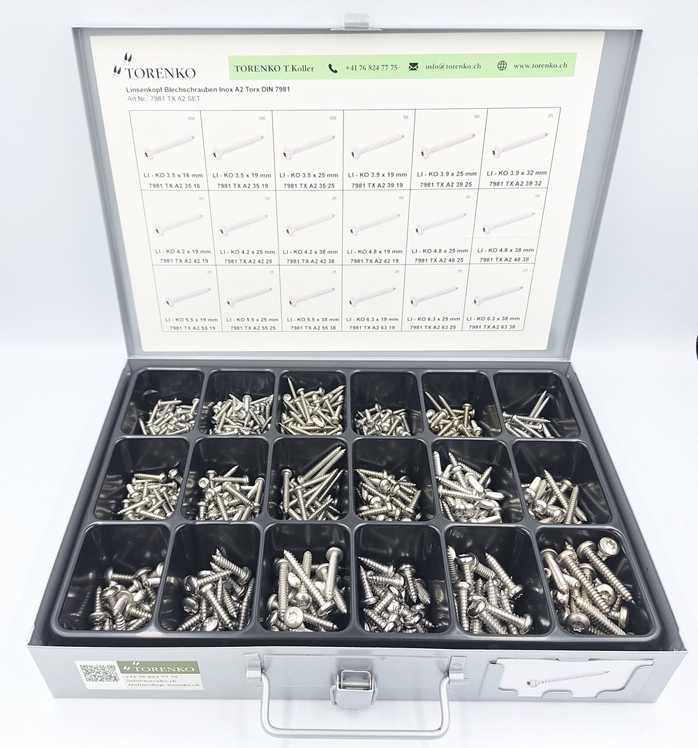 Linsenkopf Blechschrauben Torx Inox A2 Sortiment 825-tlg.