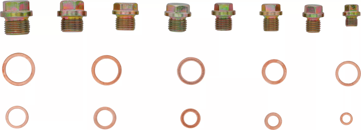 Ölablass-Schrauben und die passenden Dichtringe dazu in einem Sortiment. Was will man mehr.