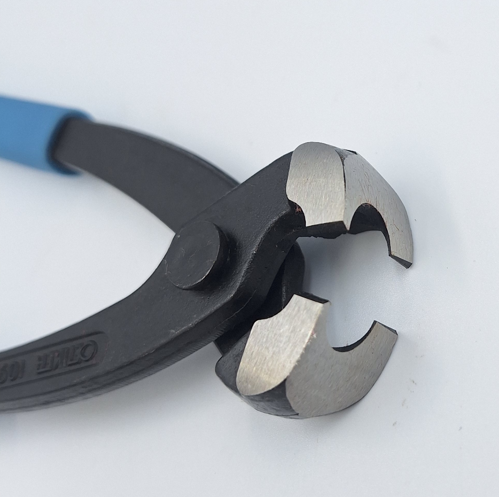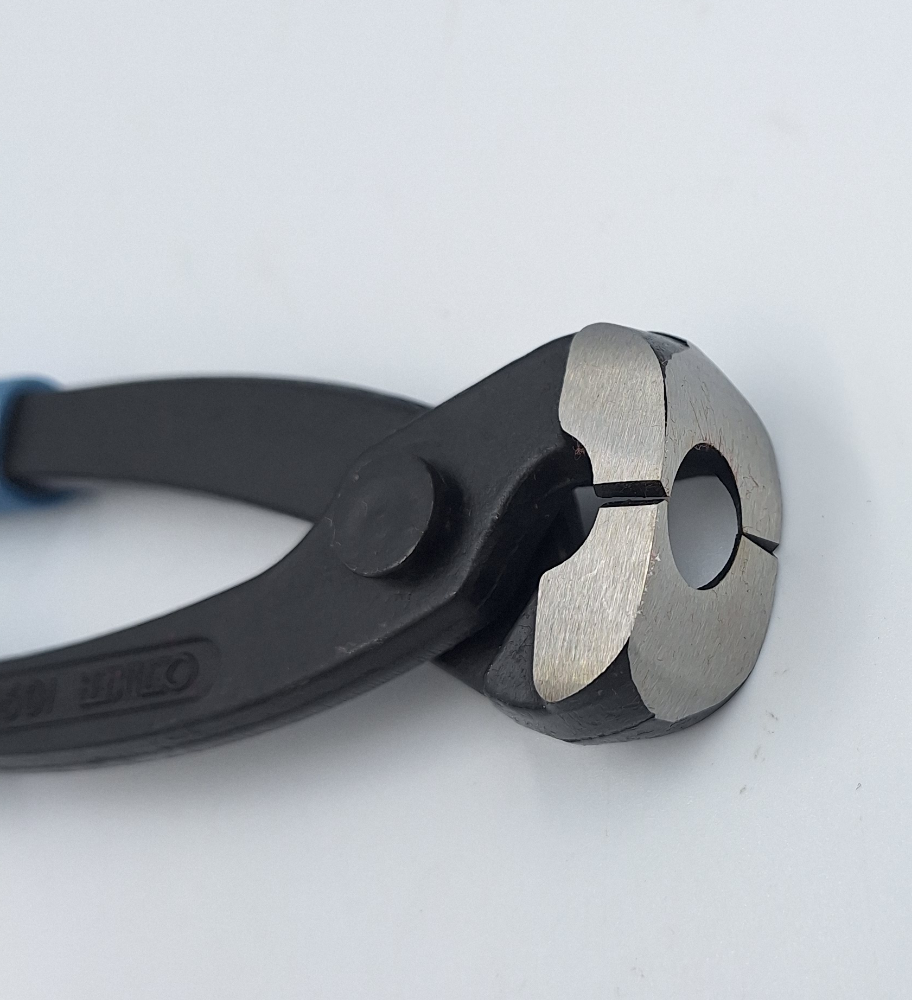 Diese Zange mit Seitenbacken und Frontbacken ist perfekt um Ohr-Briden / Klemmen an engen Stellen zu verarbeiten.