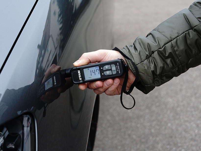 Das handliche und einfach anwendbare Schichtdickenmessgerät ETARI ET-111s ermöglicht eine zuverlässige und schnelle Schichtdickenmessung auf Eisen- und Nichteisenmetallen (z.B. Aluminium). Nachlackierte oder gespachtelte Bereiche werden durch das magnetinduktive Wirbelstrom-Messverfahren zuverlässig identifiziert. Ideal zur Kontrolle und Dokumentierung des Lackabtrags beim Schleifen/Polieren. Komfortable Anwendung durch beleuchtetes Display und automatische Abschaltung nach 60 Sekunden.