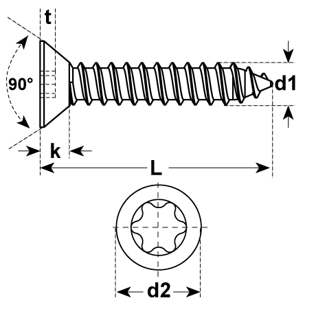 Ø 3.9 mm: Kopfdurchmesser 7.5 mm / Kopfhöhe 2.2 mm / Antrieb Torx 15
