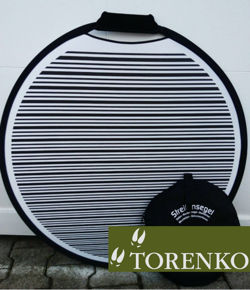 Das runde Streifensegel ist speziell für den mobilen Einsatz konzipiert.