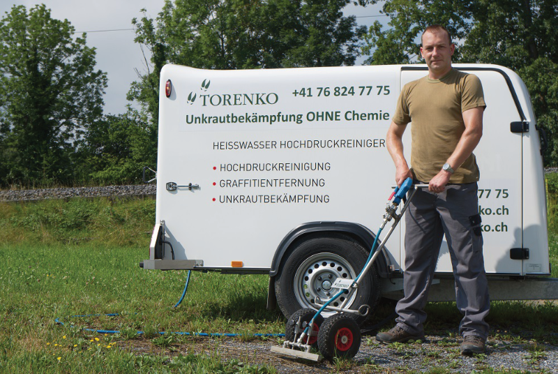 Bei der Bekämpfung von Unkraut setzt Torenko auf die Heisswasser-Methode.